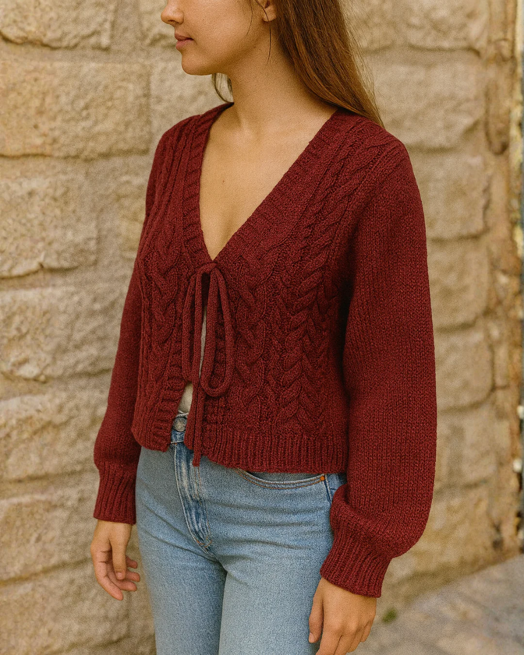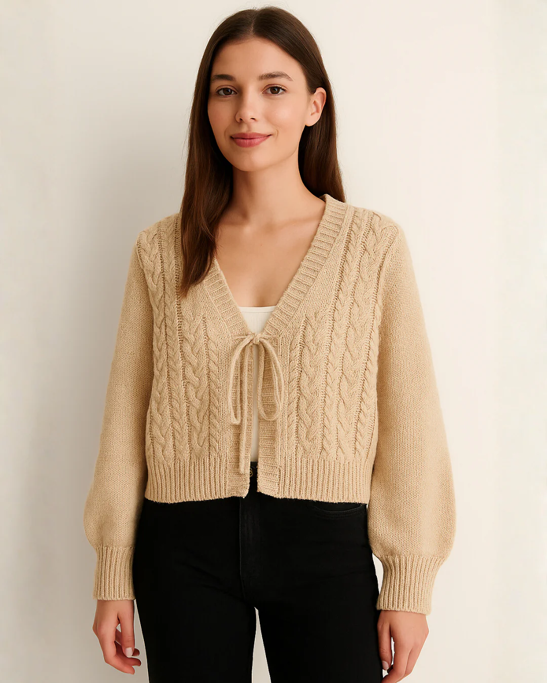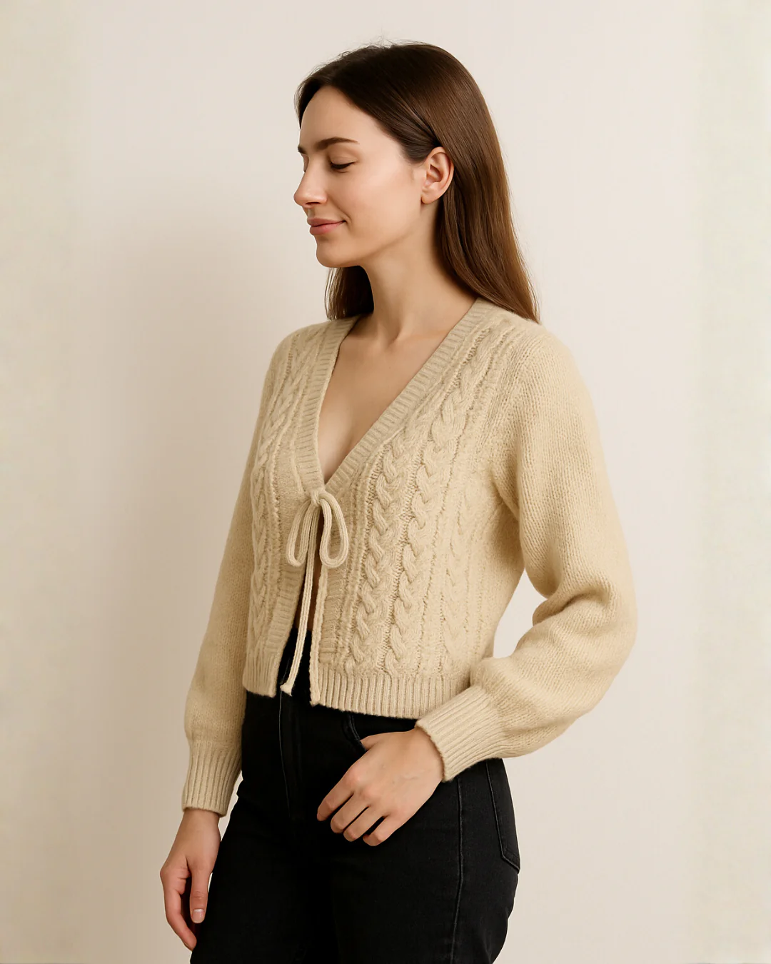 Holly | Cárdigan Corto de Punto Trenzado con Lazos