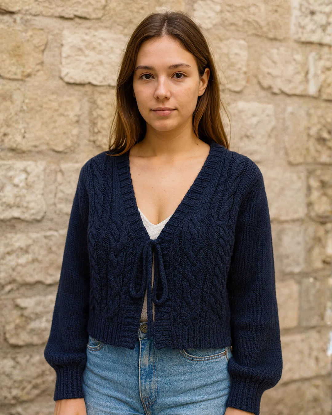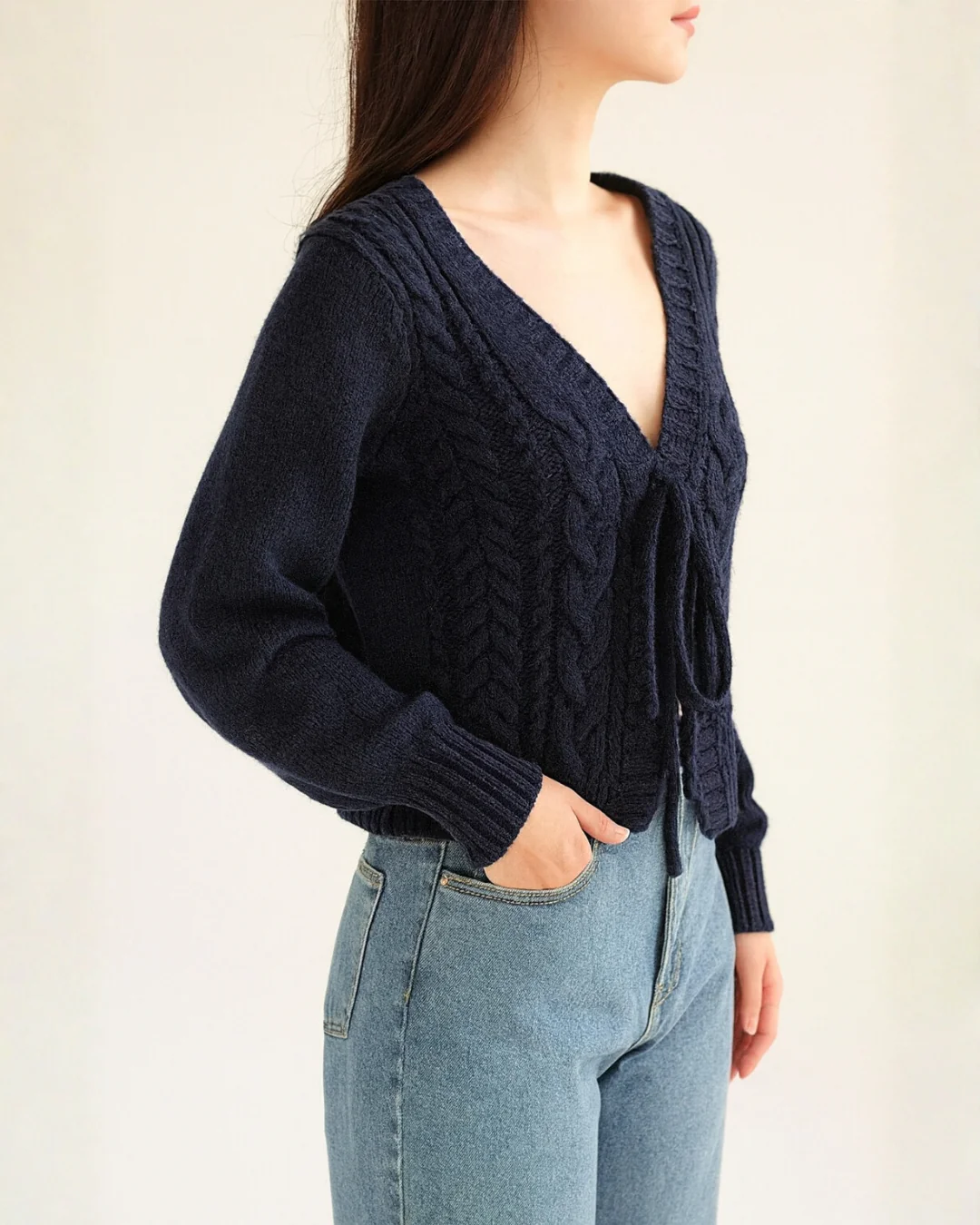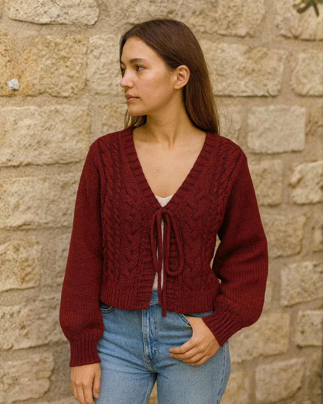 Holly | Cárdigan Corto de Punto Trenzado con Lazos