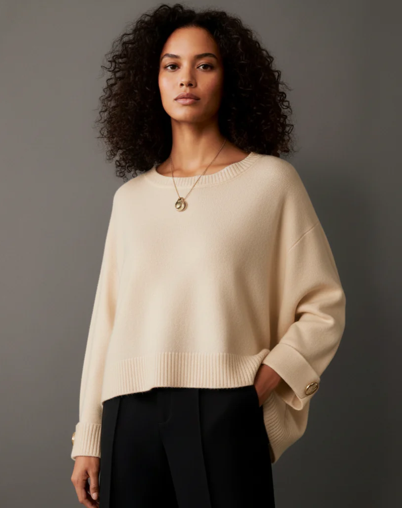 Mirna: el jersey oversize elegante que combina estilo, contraste y personalidad