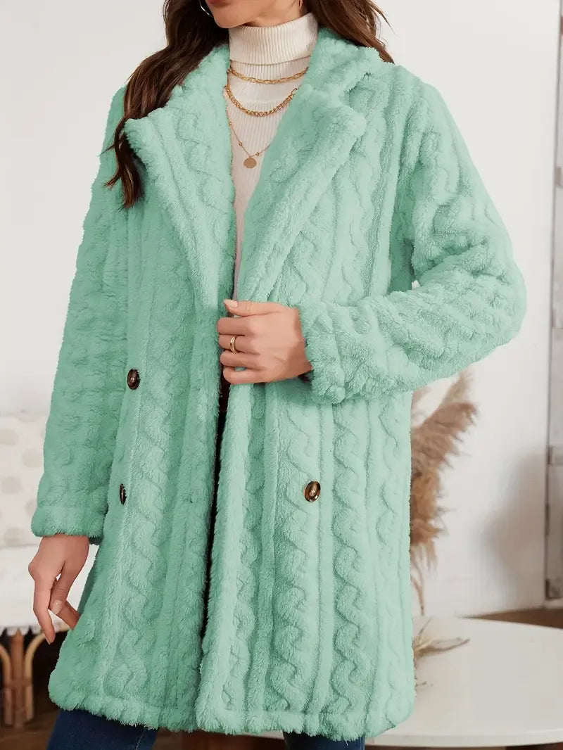 • Estilo: Abrigo largo con botones frontales, de corte elegante y diseño clásico – ideal para otoño e invierno.