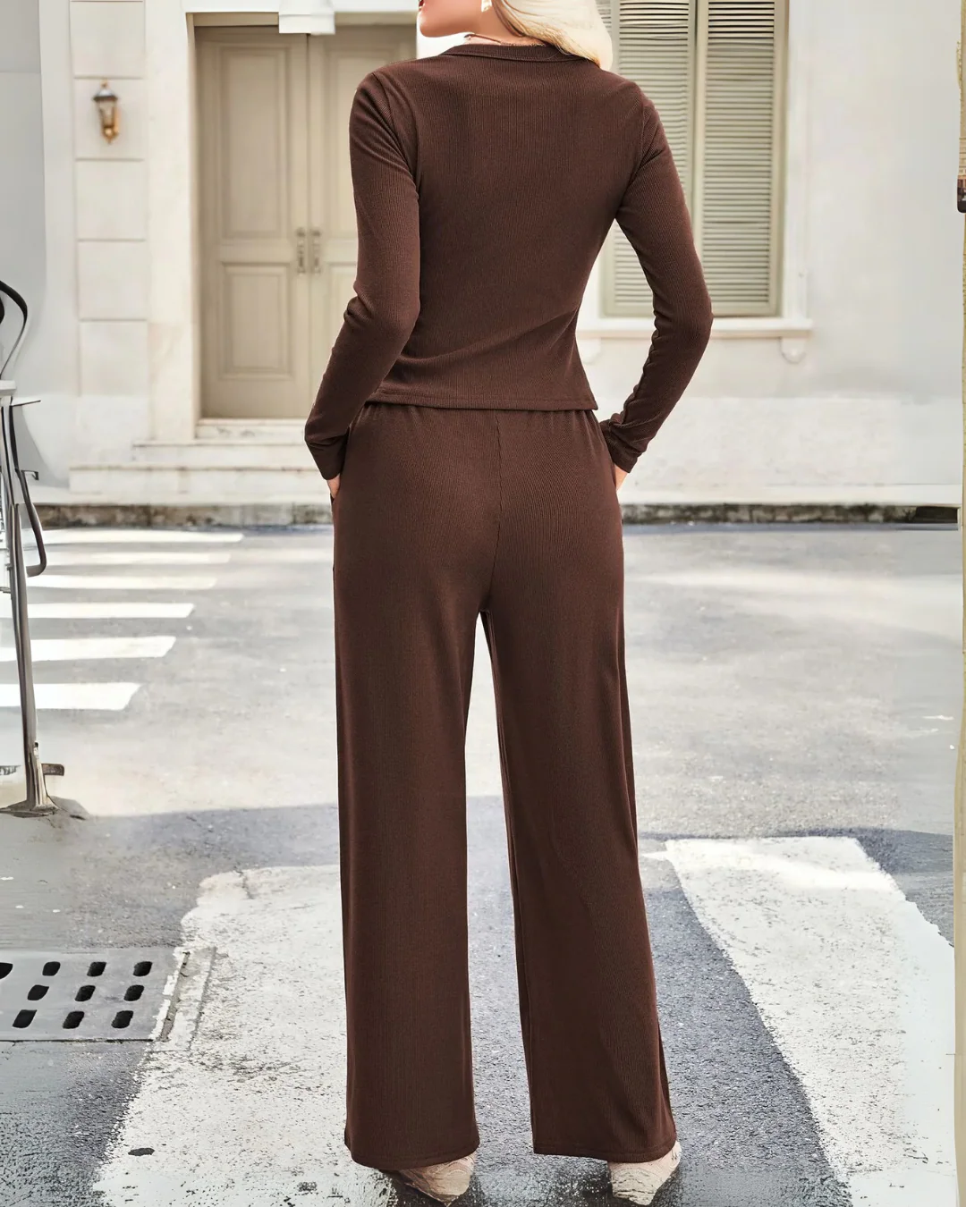 - Diseño: Conjunto de dos piezas con top de botones y pantalón a juego, pensado para aportar elegancia y comodidad en partes iguales.