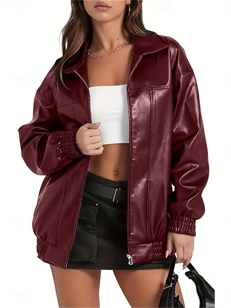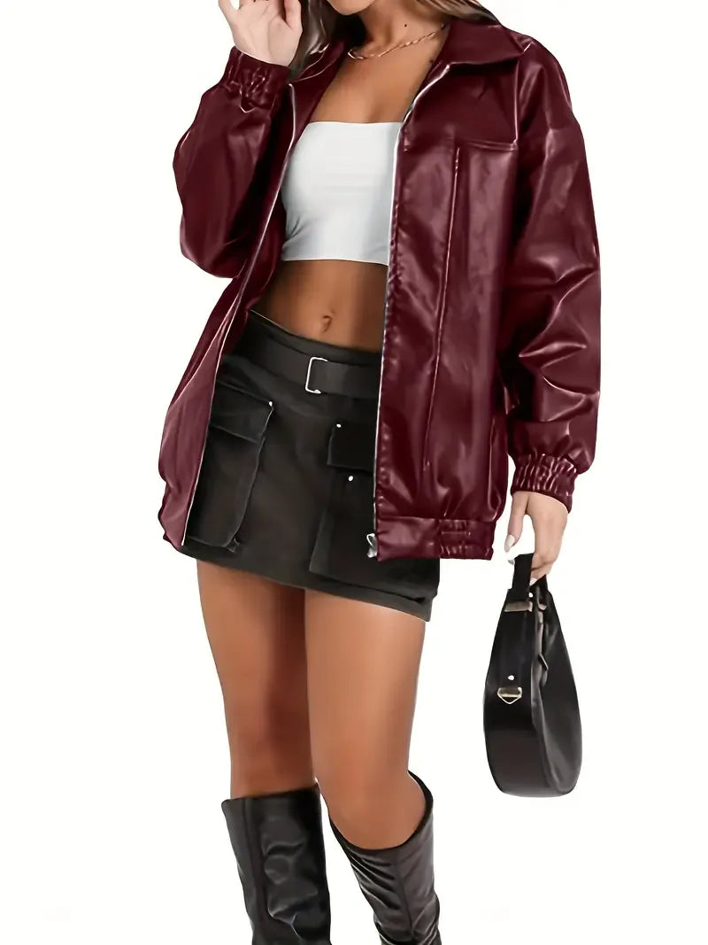 • Estilo: Chaqueta de cuero oversize con un diseño moderno – perfecta tanto para ocasiones casuales como semi-formales.